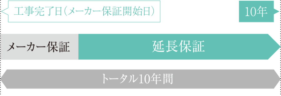 当該メーカーによる保証項目の保証期間を当社負担により10年に延長するものです。