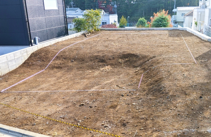 地盤の関係で、建築予定地に段差がある地形での建築。