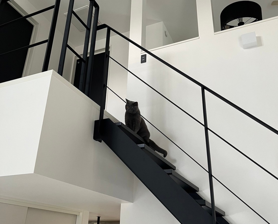 収納上の壁面を上手く使い、猫ちゃんが歩けるキャットウォークを据付。普段は部屋の内装に溶け込んでいるので、ごちゃごちゃ印象にならない空間デザインに仕上がりました。