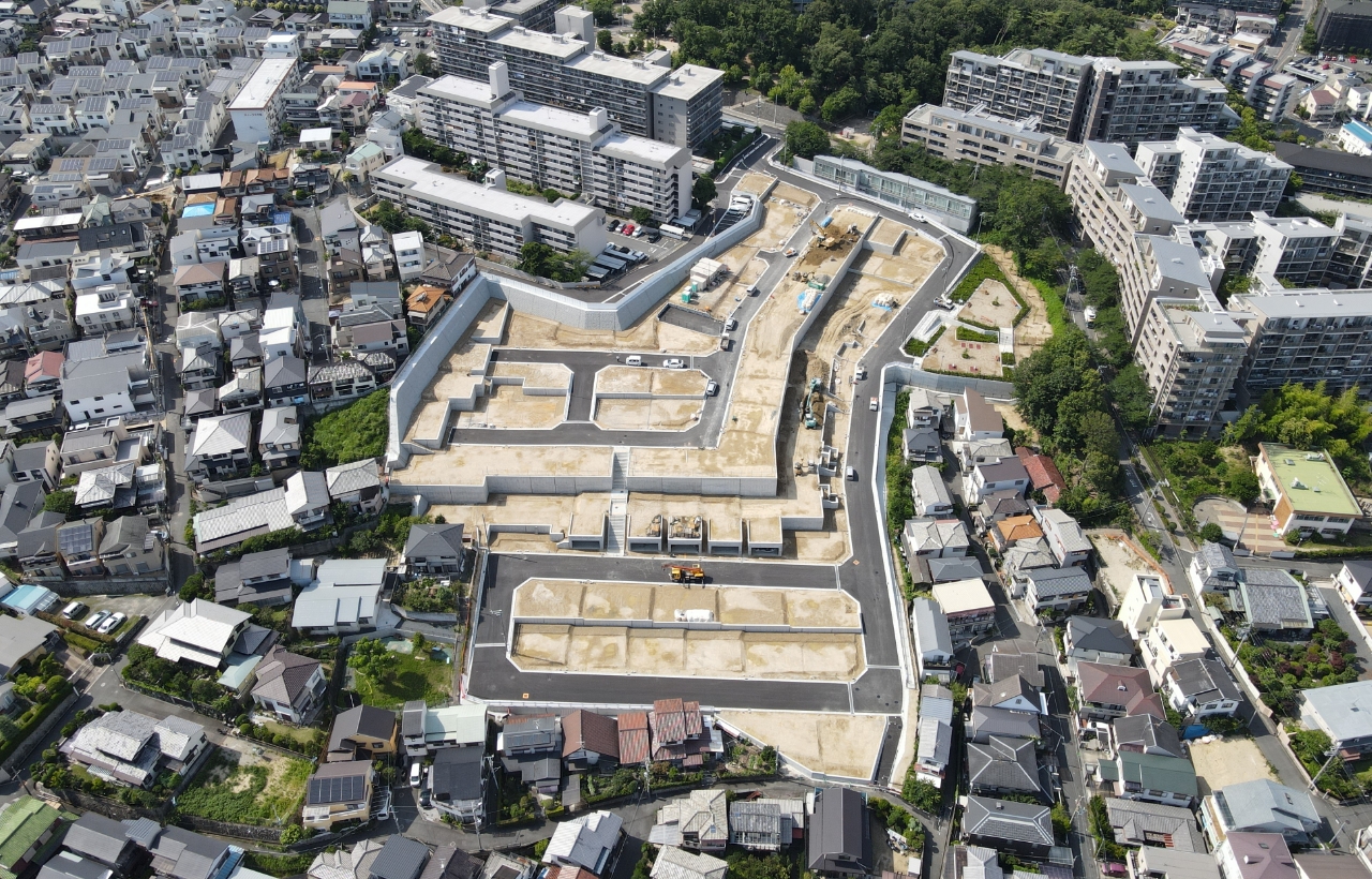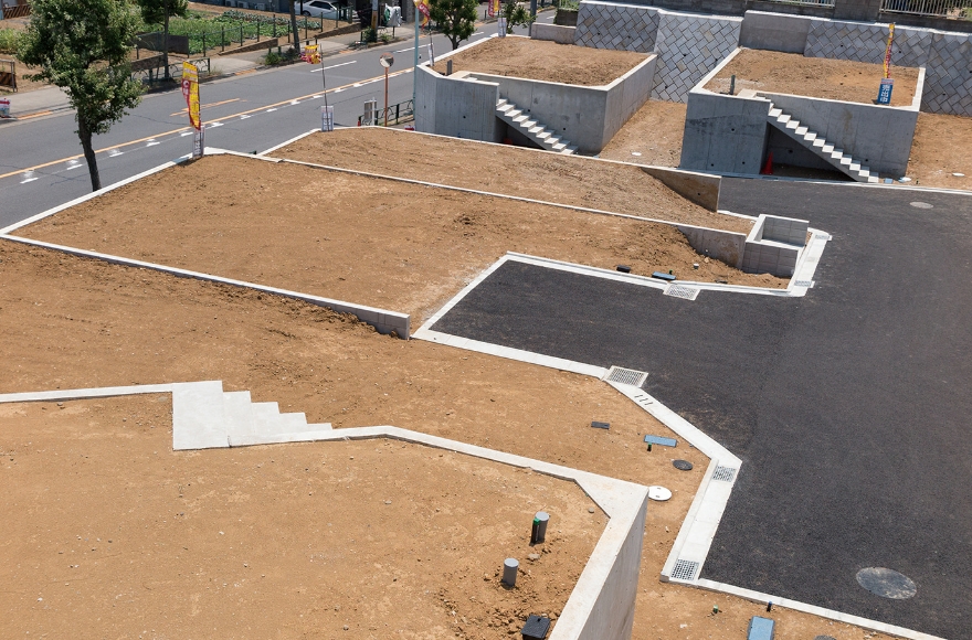 住宅用地の造成工事を行います。綿密な地盤調査から工事計画の立案まですべてワンストップでお任せいただけます。
